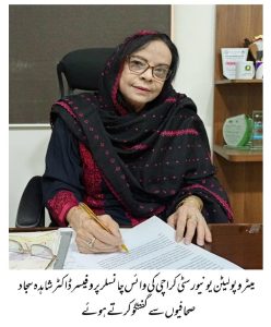 کھیلوں کو تعلیم کے مساوی اہمیت حاصل ہے، وائس چانسلر پروفیسر ڈاکٹر شاہدہ سجّاد ۔